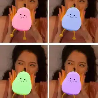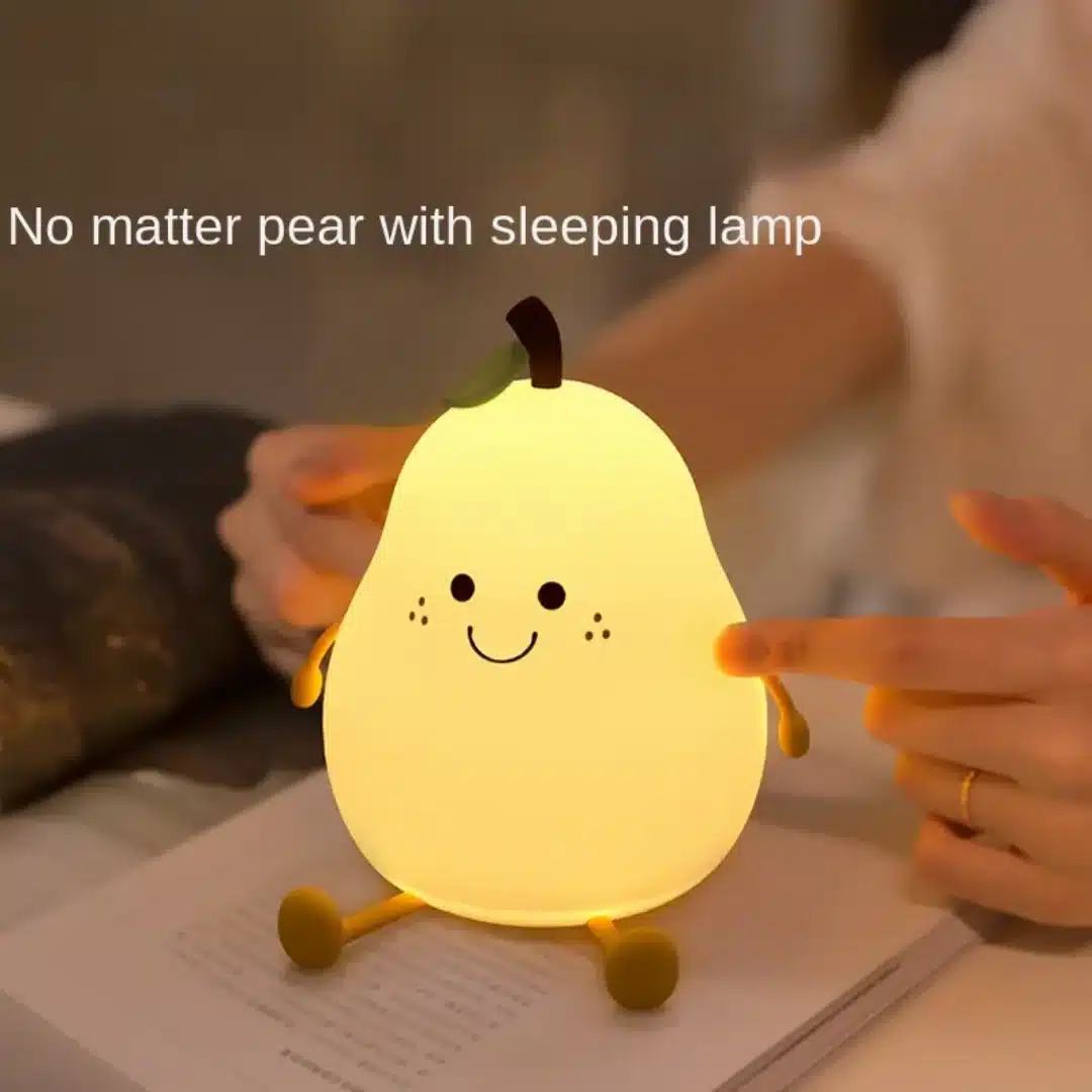 A playful pear-shaped lamp designed to bring smiles and a soft, comforting glow to your nights.